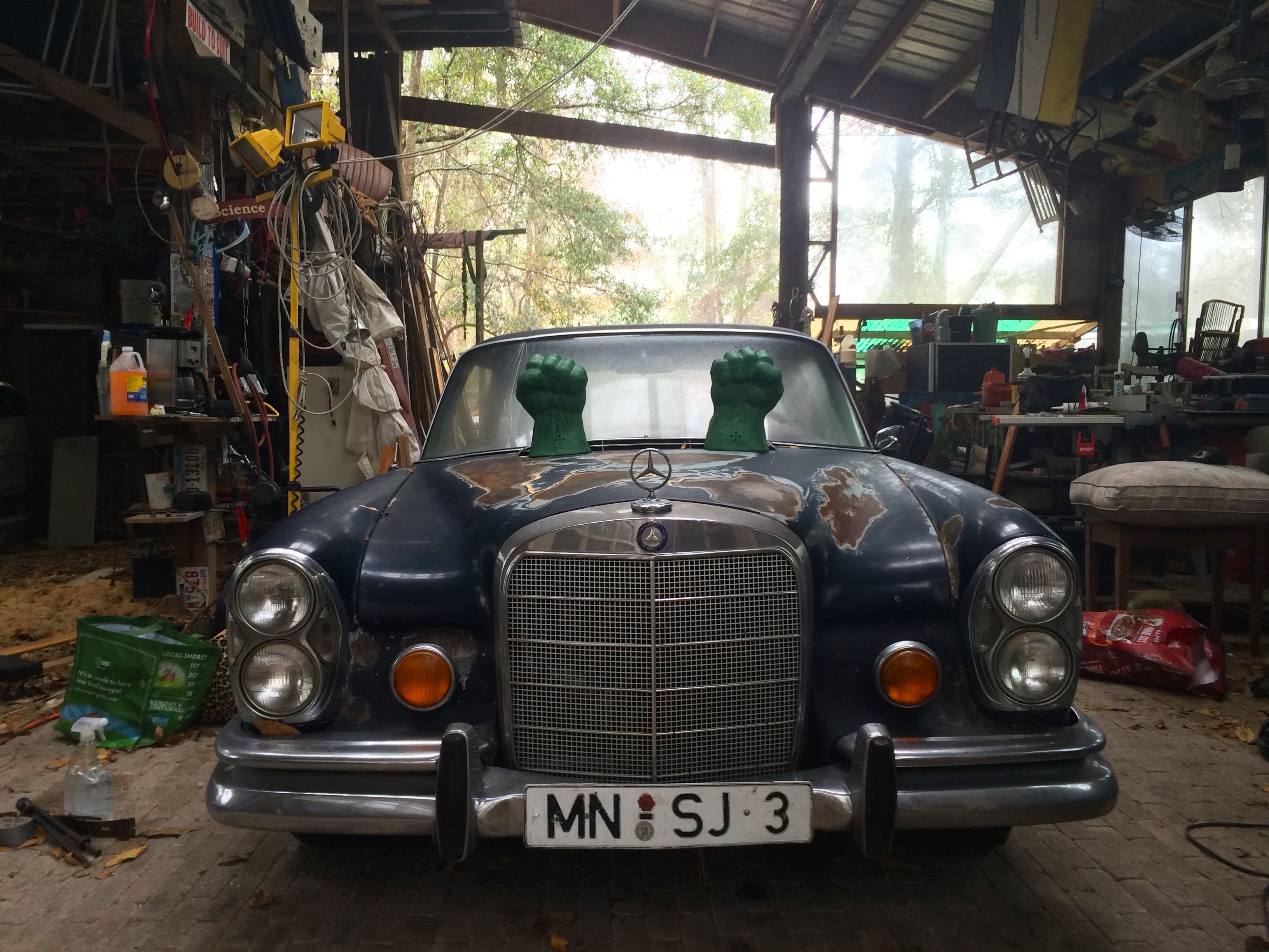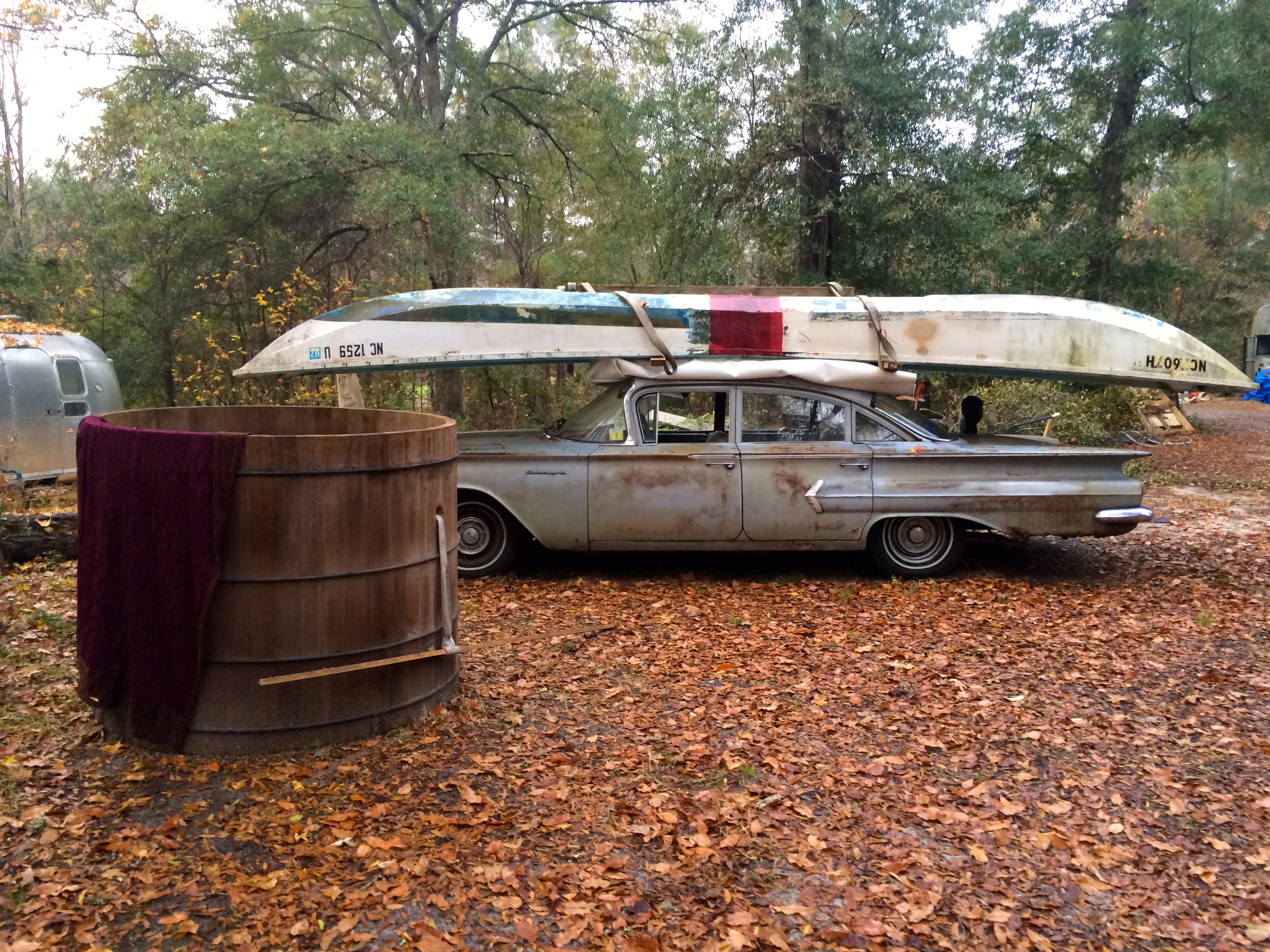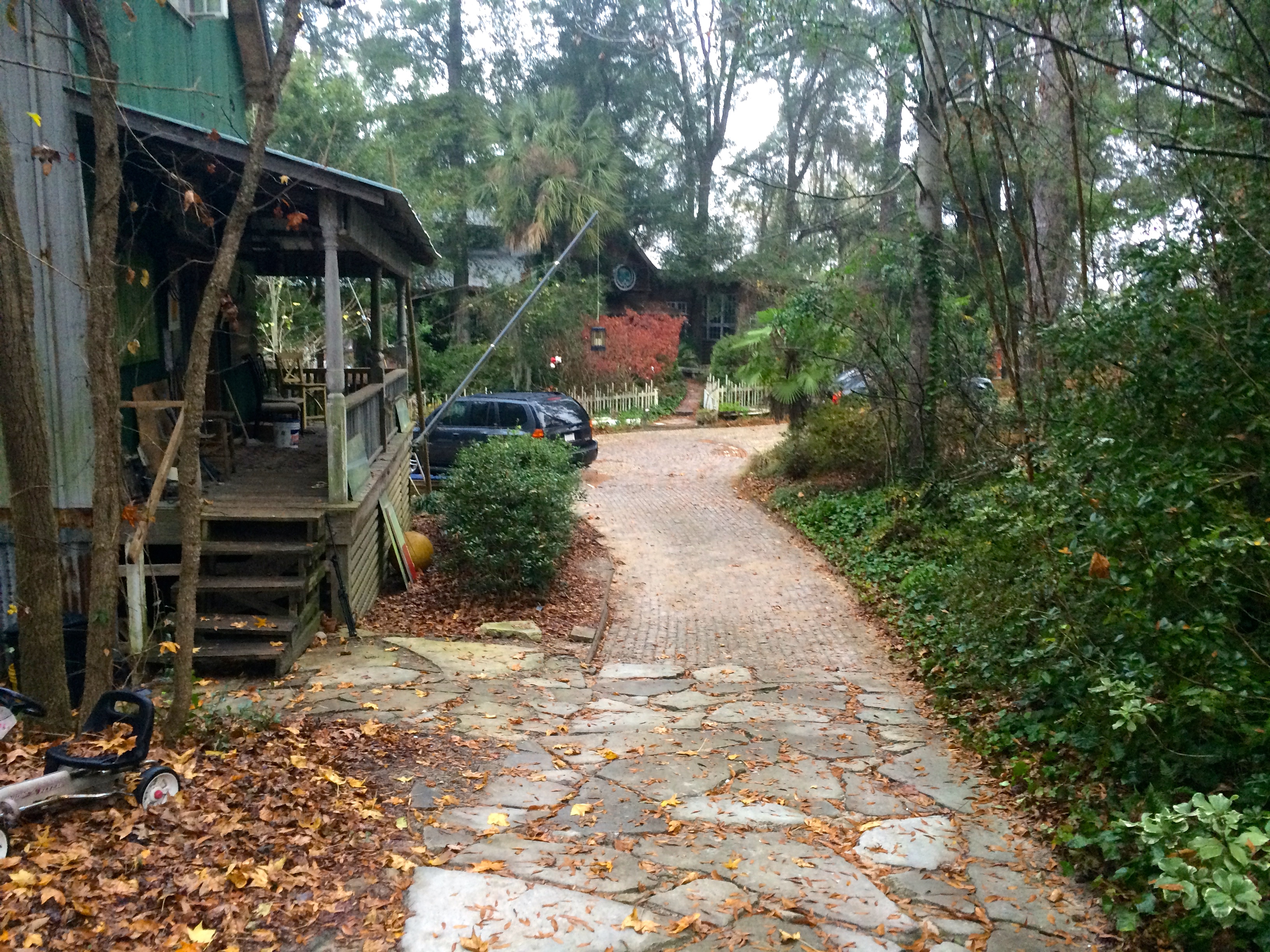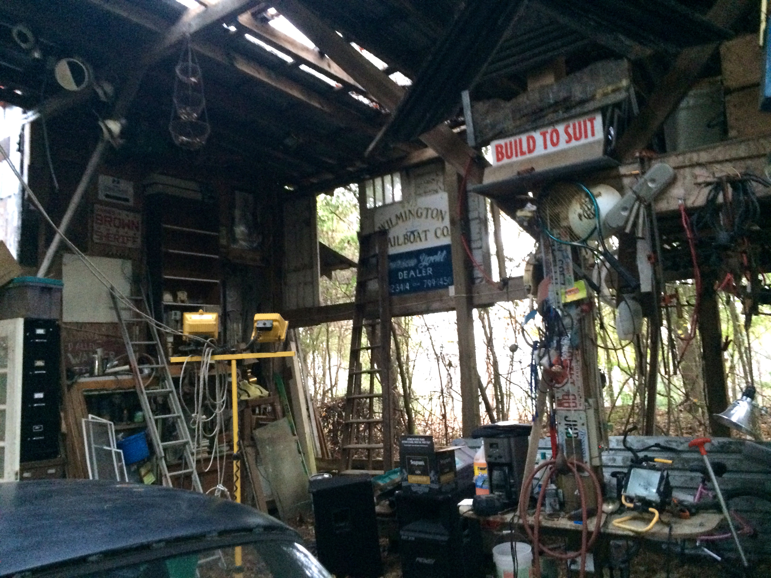Everything about the house and property feels spontaneous and iterative, but there is also an element of junkiness that some would be turned off by. There are at least 4 old Mercedes, two RVs, a school bus, a Jeep CJ7 and a dozen different types of boats stashed in various locations around the property. There are piles and piles of lumber, tools, pianos and piano parts, metal signs, boat and automobile engines, bicycles, furniture and other completely random odds and ends like an old rusted out dentist chair, or commercial sewing machine. Up the hill from the guest house is another partially started framing of what looks like it will eventually be another garage.