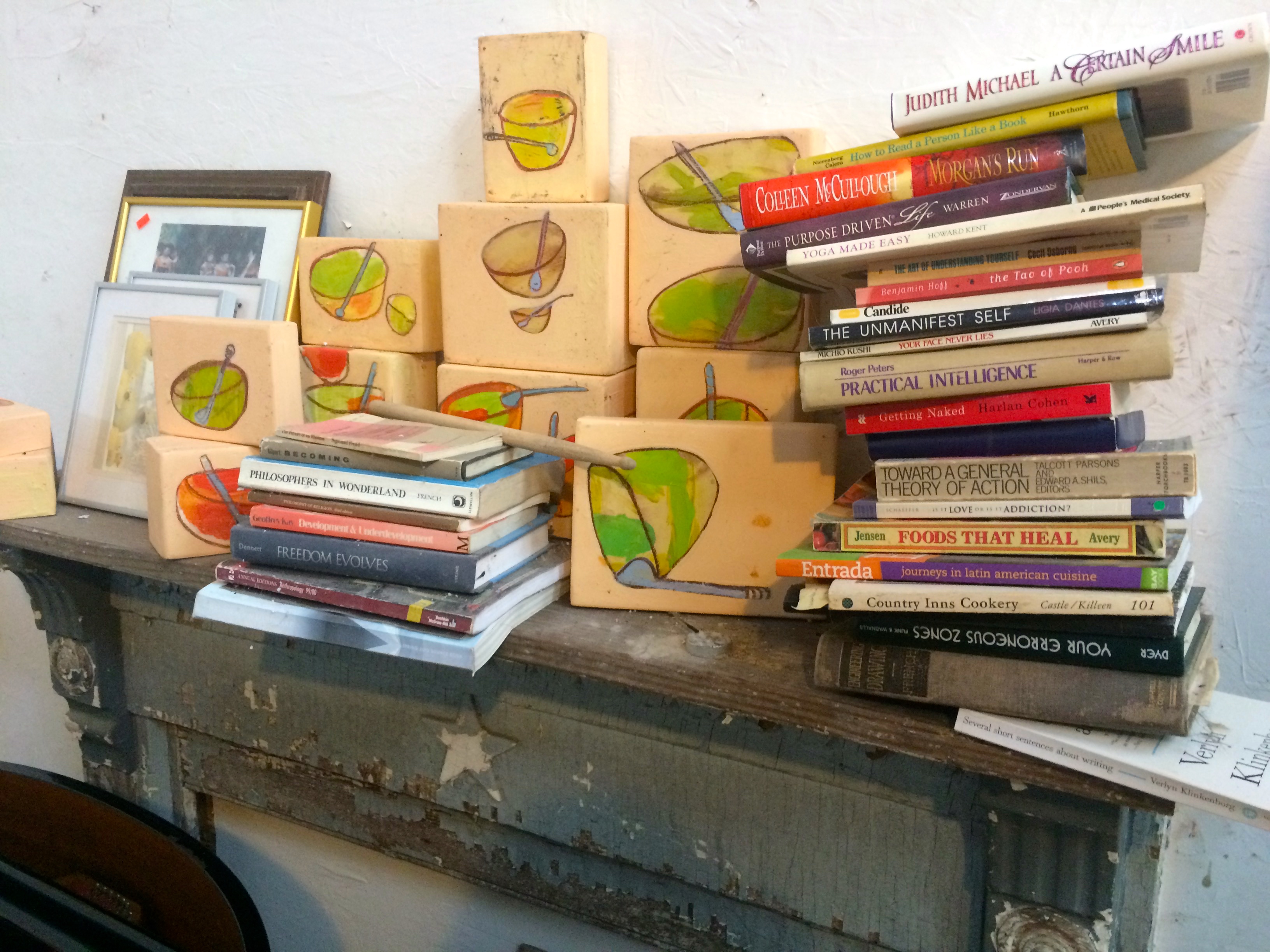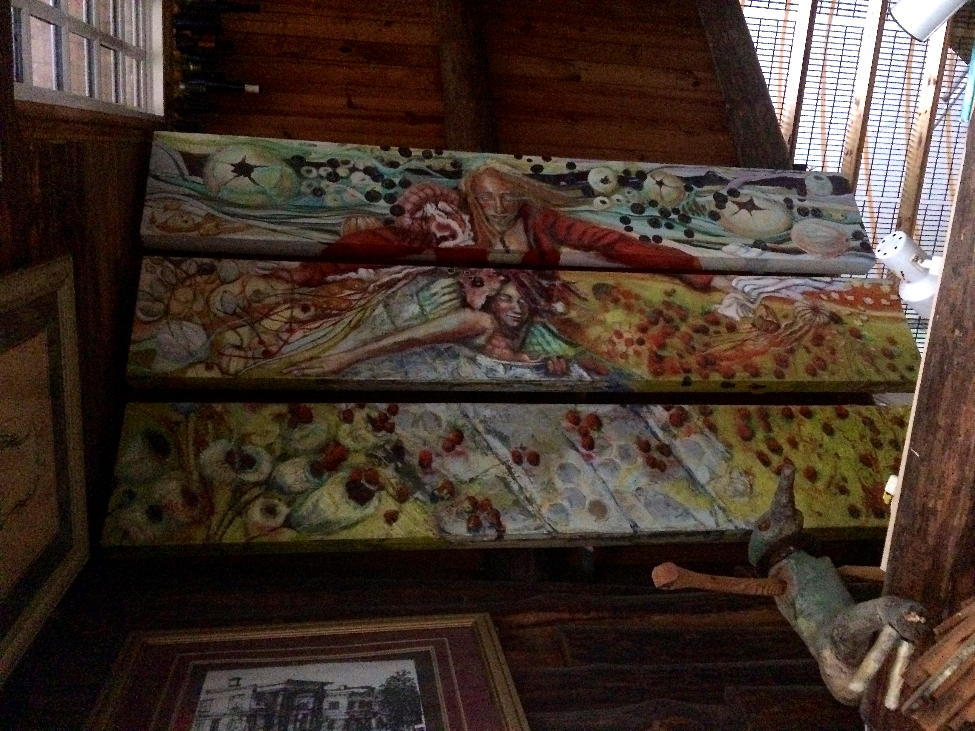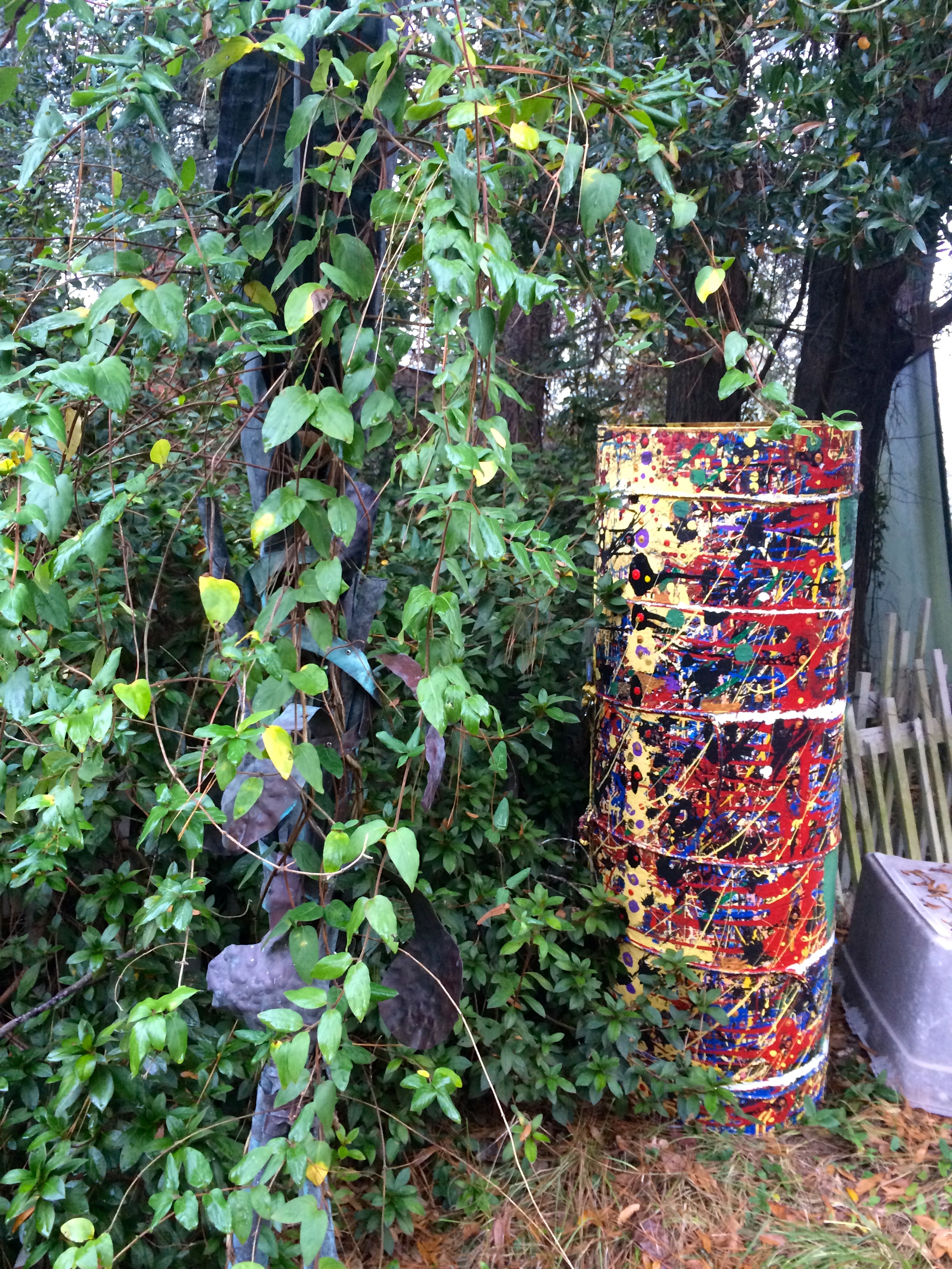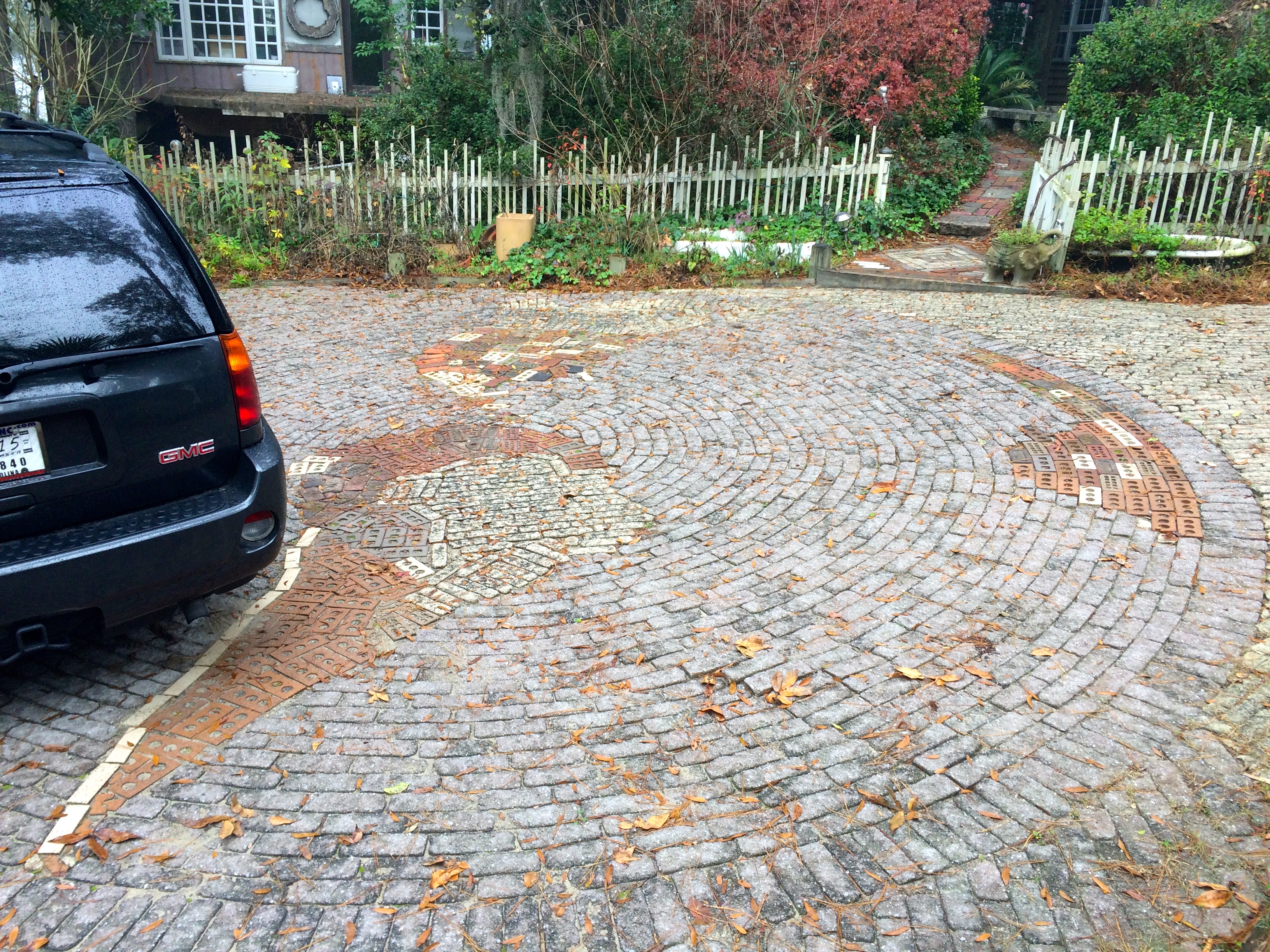 WalkerWorld is part Alice in Wonderland, part Hoarders. There is magic everywhere, from the globe made out of bricks in the driveway, to the life-size chess set by the outdoor fireplace to the art that covers every surface of the house. The interior of the main house is neat and fairly well kept, but there hundreds of interesting things to look at, from art to photos to the dozens of notecards with quotes written on them tacked all over the walls.